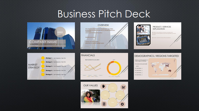 Give your new business it's identity and get others to believe in your vision. This pitch deck is perfect for a new start up or existing businesses looking to attract new investors or relations. Let your inspiration speak through the slides and covey your message clearly.